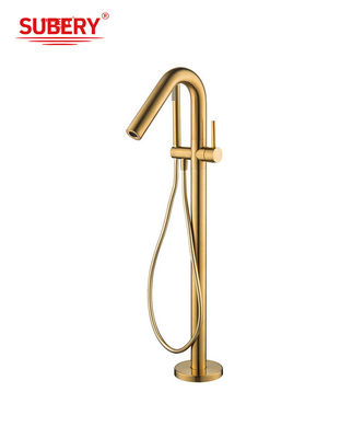 حوض الاستحمام الذهبي الزهري الزهري الحر الوقوف الصنبور OEM واحد الرافعة الأرضية مثبتة